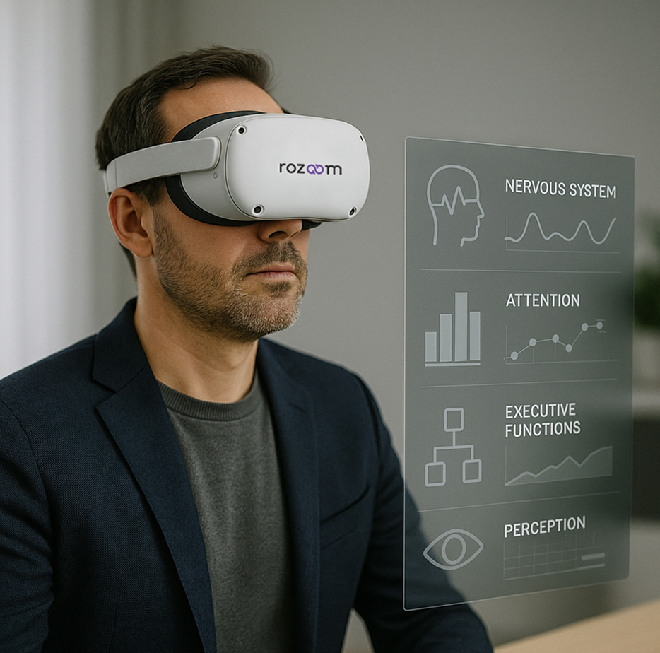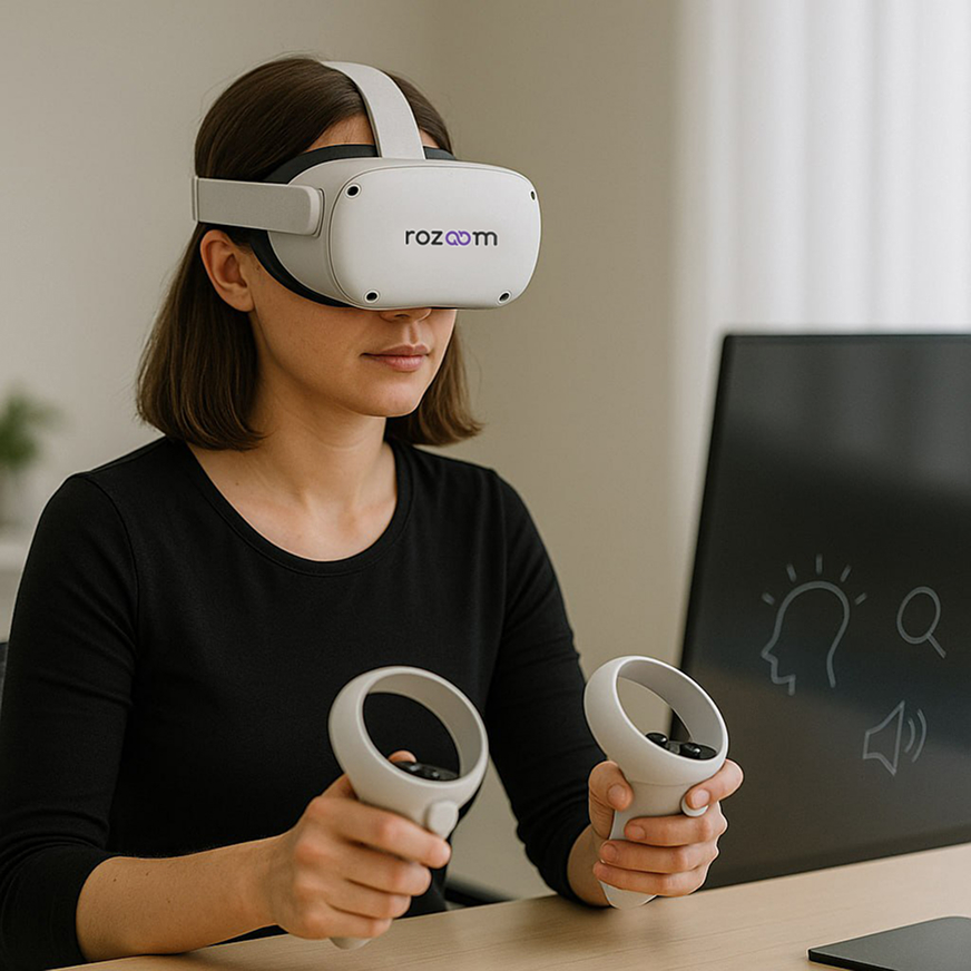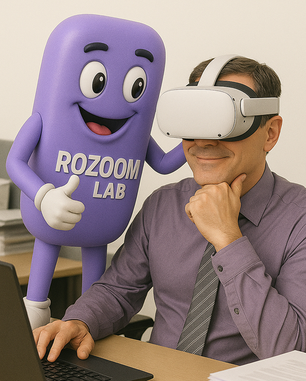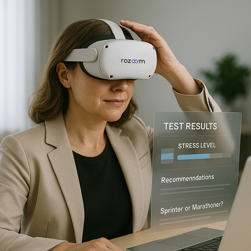 Попробуйте Rozoom в действии — убедитесь, как наша уникальная разработка, VR-технологии и искусственный интеллект помогают снижать стресс, повышать вовлечённость и сохранять энергию команды.