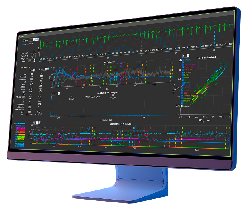В гарнитуре встроены сенсоры, которые непрерывно считывают физиологические параметры: частоту сердцебиения, вариабельность ритма (HRV), дыхание, электроэнцефалограмму (ЭЭГ) и др. Система отслеживает реакцию организма на виртуальную среду в реальном времени.